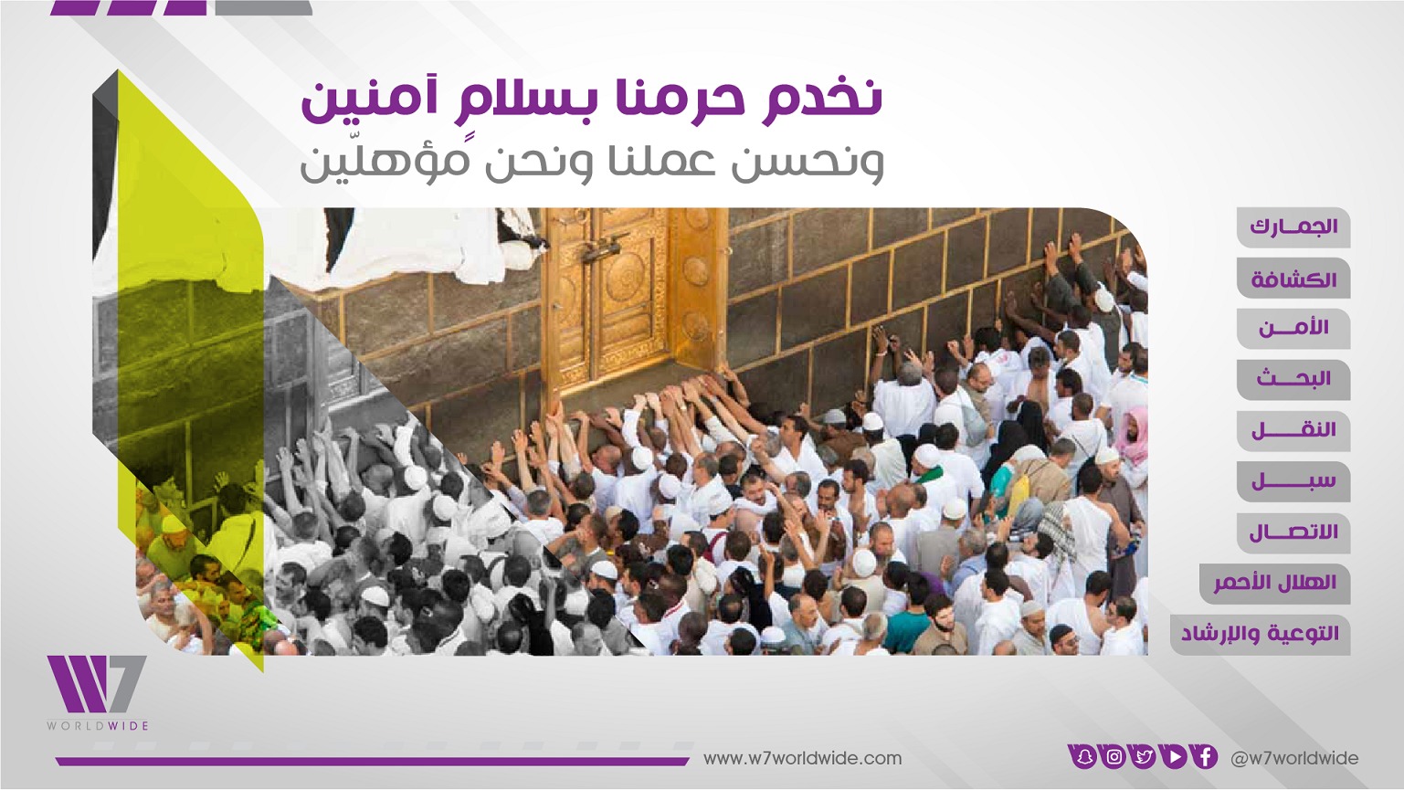 مع انطلاق موسم حج هذا العام 1444هـ، وتوافد الحجاج إلى بلاد الحرمين من كل حدب وصوب، أنتجت W7Worldwide للاستشارات الاستراتيجية والإعلامية، مقطعًا مرئيًا بعنوان “فرسان الحج”، يبرز تسابق الجهات الحكومية السعودية وما تسخره المملكة العربية السعودية من إمكانيات وطاقات بشرية ومادية لتيسير الحج وخدمة ضيوف الرحمن، مما يضمن أداء مناسكهم بيسر وسهولة، وفي أجواء إيمانية وروحانية مفعمة. (يمكن مشاهدة المقطع هنا: (https://twitter.com/W7Worldwide/status/1671074911228678146