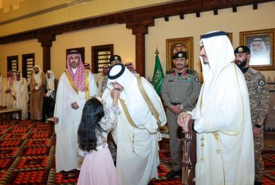 الأمير تركي بن طلال يتقدم جموع المصلين لأداء صلاة عيد الأضحى المبارك في جامع الاثنين بمركز بلّسمر شمال المنطقة، ويستقبل المهنئين في الصالة الملكية بحي الخالدية في أبها، فيما قام سموه بزيارة كل من رئيس محاكم عسير سابقًا، و شيخ شمل قبائل علكم، كما زار عددًا من المرضى المنومين في مستشفى عسير المركزي.