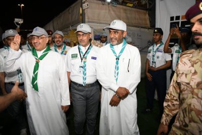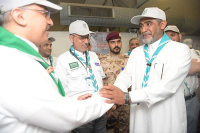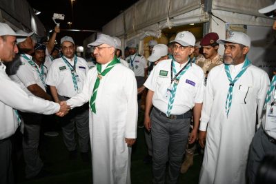 وقف معالي وزير التعليم رئيس جمعية الكشافة الأستاذ يوسف البنيان على جهود أبنائه الكشافين في خدمة ضيوف الرحمن