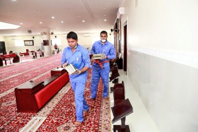 وأوضح المشرف العام على الخدمات المساندة بوكالة الجامعة الأستاذ عبدالرحمن الرحيمي أن هذه المبارة تأتي في إطار حرص الجامعة على تفعيل دورها فى الخدمة المجتمعية فى ظل هذه الجائحة ويشارك فيها مايقارب ١٦٠ عامل نظافة بكامل المعدات وأدوات النظافة لتنظيف وتطهير الجوامع والمساجد بالمحافظة وتم توزيعهم بالتنسيق مع مدير الفرع بالمحافظة ومراقبين الجوامج والمساجد بشكل فرق لنظافة مايقارب ١٣٠ جامع ومسجد