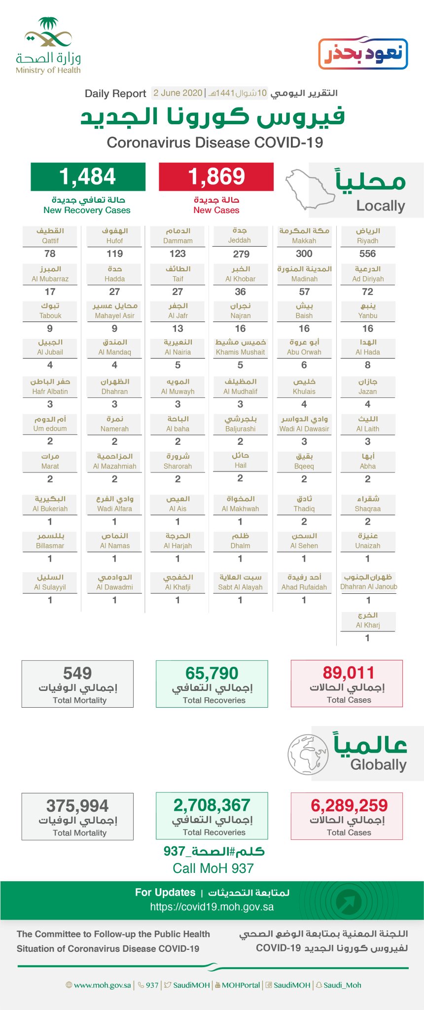 صرح المتحدث الرسمي #وزارة_الصحة ان إجمالي الحالات النشطة التي تتلقى العلاج حاليًا 22.672 حالة، منها 1264 حالة حرجة، وهو رقم مقلق خاصة بعد التزايد الملحوظ في الأيام الماضية خصوصًا عند كبار السن ممن يعانون من أمراض مزمنة وبالأخص في مدينتي #جدة و #الرياض. واضاف المتحدث ان إجمالي الفحوصات التي تمت في المرحلة السابقة 853.987 فحص مخبري دقيق و