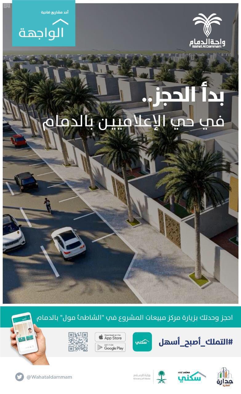 أعلن مشروع واحة الدمام الواقع في ضاحية الواجهة السكنية بالدمام، إحدى الضواحي السكنية الكبرى لبرنامج سكني التابع لوزارة الإسكان، عن بدء الحجز للوحدات السكنية في حي الإعلاميين، وذلك في إطار الاتفاقية المُوقّعة بين وزارتي الإسكان والإعلام لتخصيص أحياء سكنية لمنسوبي وزارة الإعلام والإعلاميين من حاملي بطاقة المهني الإعلامي في عدد من المدن ضمن مشروعات سكني بالشراكة مع القطاع الخاص.