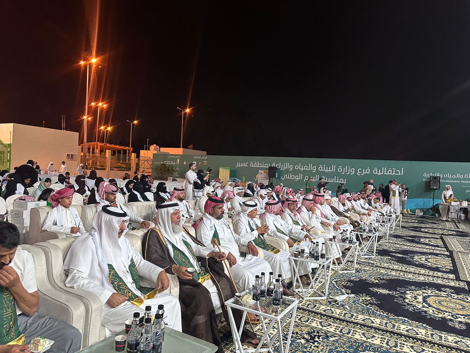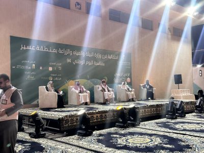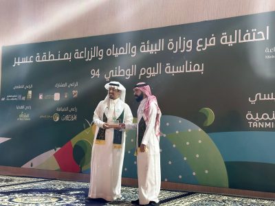 اقام مساء هذا اليوم الاربعاء الموافق 25/ 9 فرع وزارة البيئه والمياه والزراعه بمنطقة عسير حفلاً بمناسبة اليوم الوطني السعودي الرابع والتسعين بحضور مدير فرع الوزاره المهندس احمد مجثل وعدد من المسؤولين ووجهاء منطقة عسير وعدد من الاعلاميين والاعلاميات وقد تضمن الحفل فعاليات للطفل تلا ذلك ندوه بعنوان التنميه الزراعيه في 94 وكان ضيوف هذه الندوه أ، محمد بن عبود صاحب مزرعة اعناب وأ، مشعل الهاجري صاحب مزرعة الليوان وأ، سعد ال واكد مشرف بمنتجع الوادي وكذلك أ، زهراءالوزير رائده في مجال النحل وقد ادار اللقاء الاستاذه نوره مروعي وبعدها بداء الحفل الخطابي بالنشيد الوطني ثم ايات من الذكر الحكيم قدم بعدها مدير فرع الوزاره كلمة هنأ فيها القياده والشعب بهذه المناسبه ودعا الله بان تتم افراح الوطن بعد ذلك تم تكريم عدد من المشاركين والجهات الراعيه للحفل اختتم بعدها الحفل بأوبريت فرحة وطن من اداء فرقة رجال المع ..