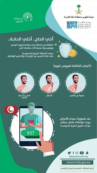 وتم تصميم هذه الرسائل عبر مقاطع فيديو وتصاميم إنفوجرافيك باللغتين العربية والإنجليزية لتوعية حجاج بيت الله الحرام بالاجراءات الاحترازية التي وضعتها الدولة للوقاية من انتشار فيروس كورونا لاسمح الله من أجل تسهيل تأديتهم لمناسك الحج بكل سلامة .