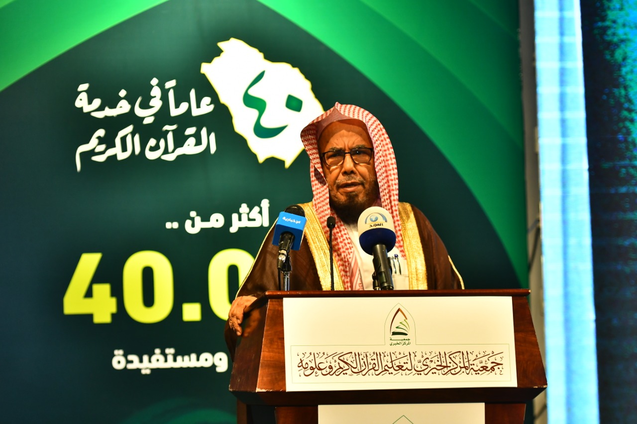 بعد ذلك قدّم رئيس مجلس الإدارة معالي الشيخ عبدالله بن محمد المطلق كلمته التي دعا خلالها منسوبي الجمعية إلى المثابرة ومواصلة العطاء والتميز، وأشار إلى أن هذا الكتاب الذي جعله الله روحاً تحيا به الأمة، وجعله نوراً يضيئ للأمة، مهما بذل المسلمون في خدمته فإنهم يرفعون أنفسهم ويرفعون دولتهم لأنه من أسباب الرفعة المؤكدة، فقد قال الحبيب المصطفى صلى الله عليه وسلم “إنَّ اللَّهَ يَرْفَعُ بهذا الكِتَابِ أَقْوَامًا، وَيَضَعُ به آخَرِينَ”