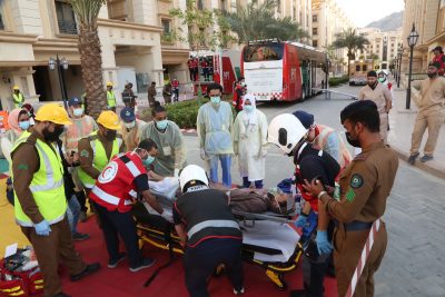 قوات الدفاع المدني بالحج تنفّذ فرضية في أحد الأبراج السكنية في العاصمة المقدسة ..
