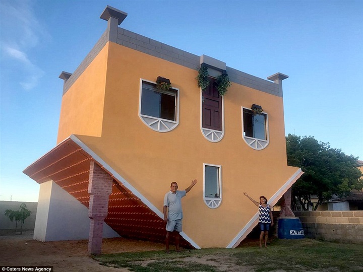 نجح عامل في تشييد بناء متقاعد لمنزلٍ مقلوب، رأسًا على عقب، في البرازيل.