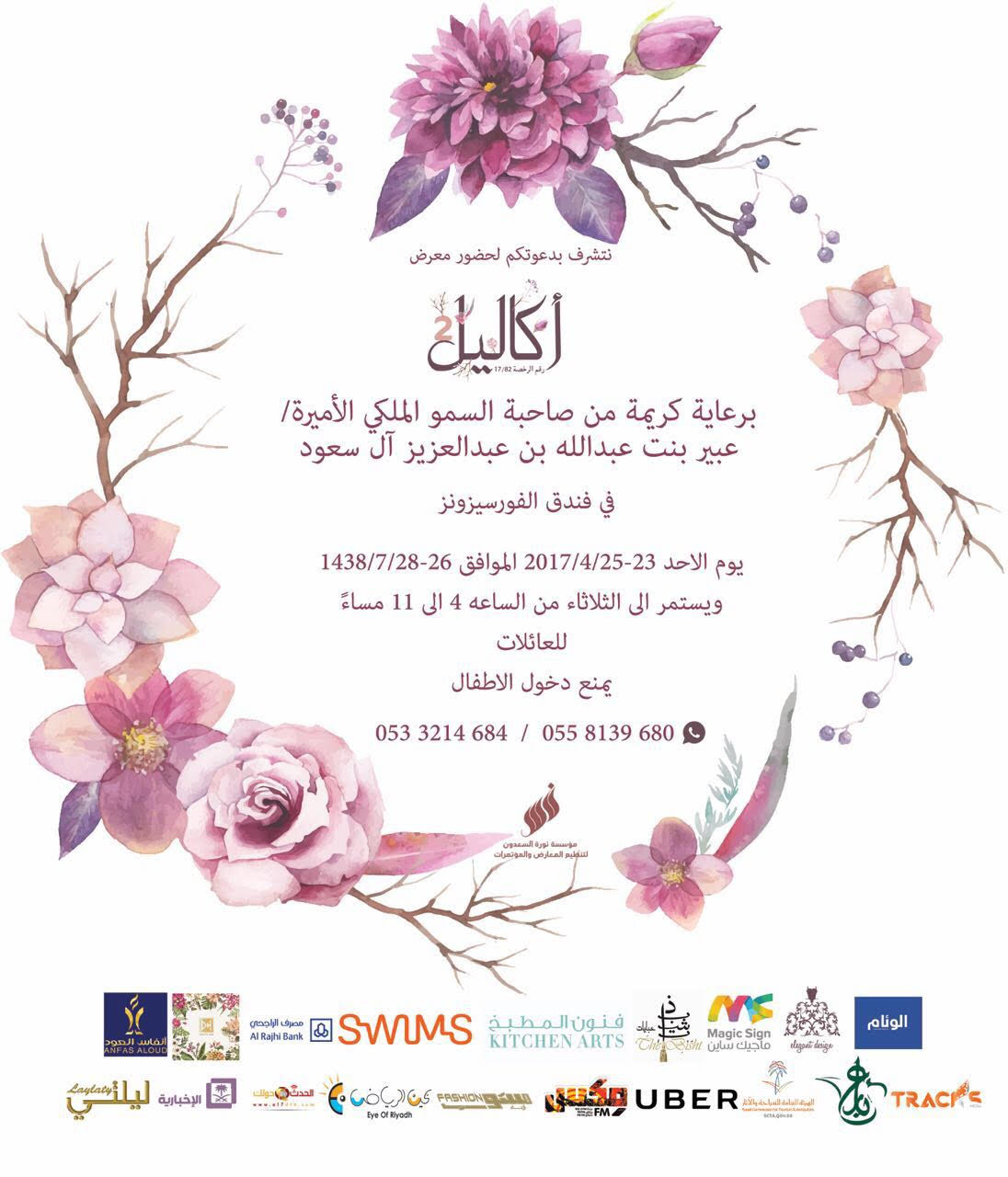 سوف تبدا فعاليات (معرض أكاليل) ‏‎‏‎‏‎من ٢٣ الى ٢٥ابريل ‏‎الموافق٢٦ الى ٢٨ رجب