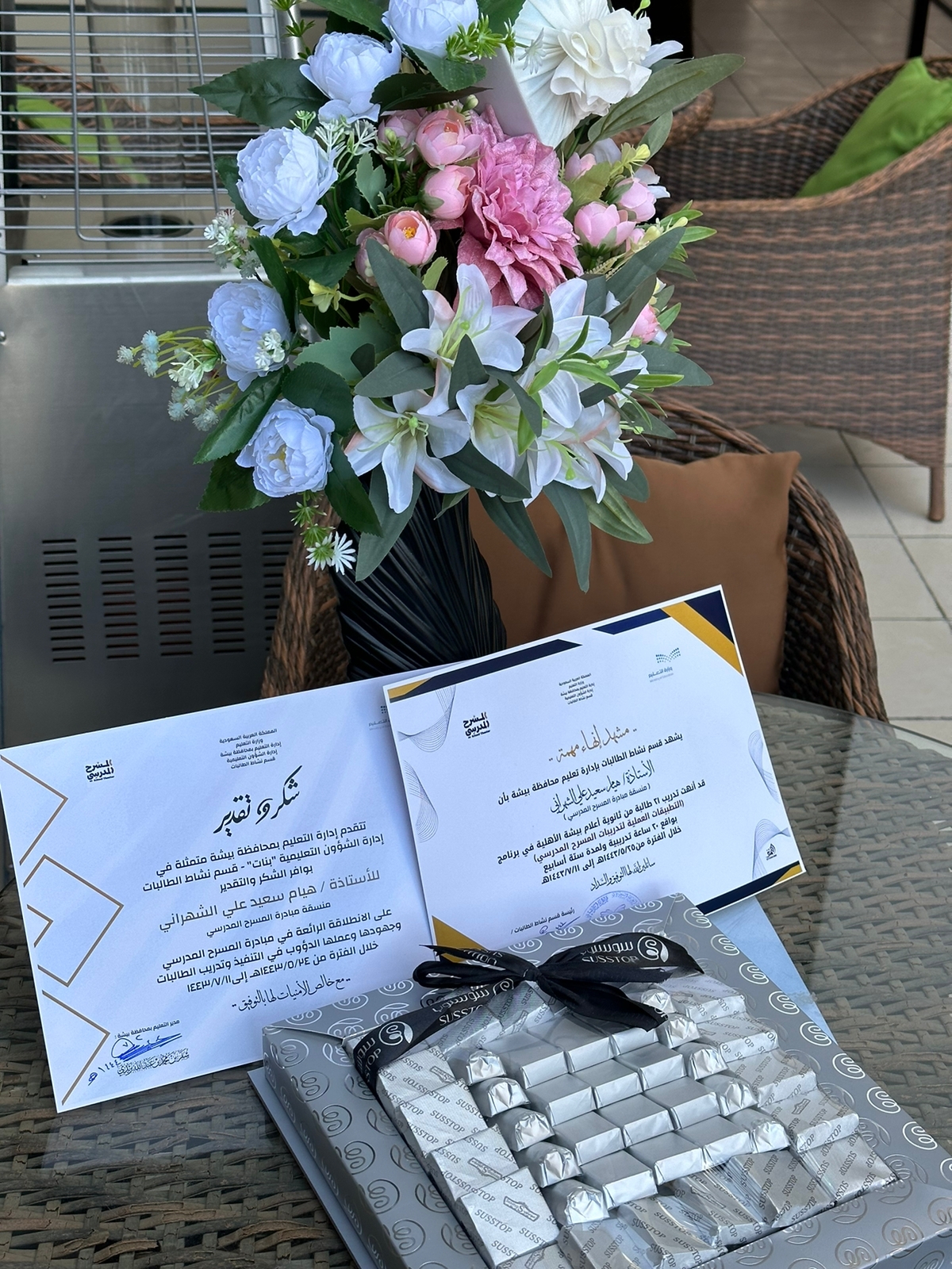 اختتمت التطبيقات العمليه لتدريبات برنامج المسرح المدرسي بتكريم مدير التعليم لمنسقه برنامج المسرح أ/ هيام الشهراني