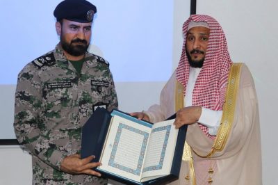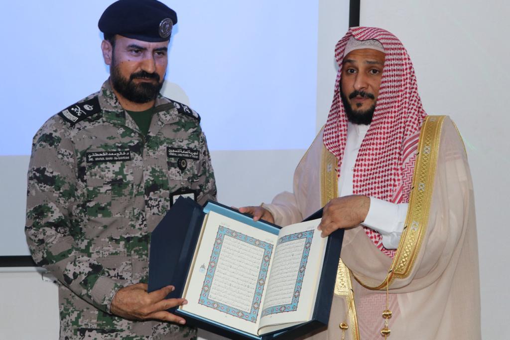 وفي ختام الحفل كانت هناك شهادات وتكريم و قدم المدخلي هدية عبارة عن مصحف شريف مع درع تعبيراً عن امتنانهم بما تقدمه المديرية العامة للسجون .