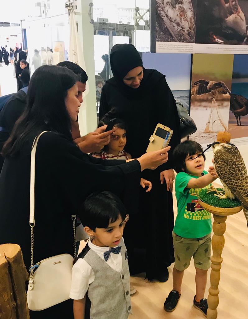 كما يحتوي المعرض على عرض حي لعدد من الصقور قدم من خلاله النادي نبذة تعريفية عن أنواع الصقور الموجودة في المعرض وطرق التعامل معها والتقاط الصور التذكارية.