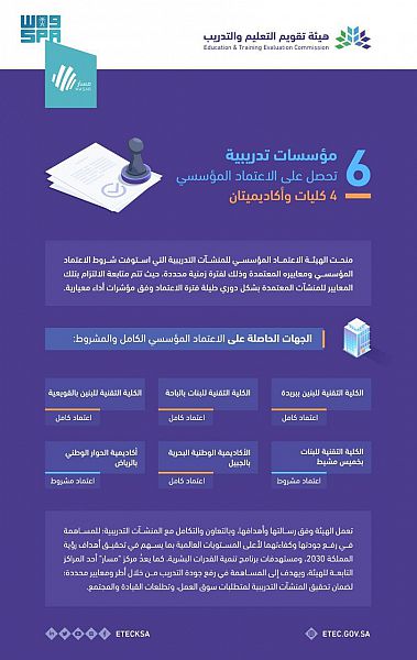 هيئة تقويم التعليم والتدريب تعلن حصول أربع كليات وأكاديميتين على الاعتماد المؤسسي