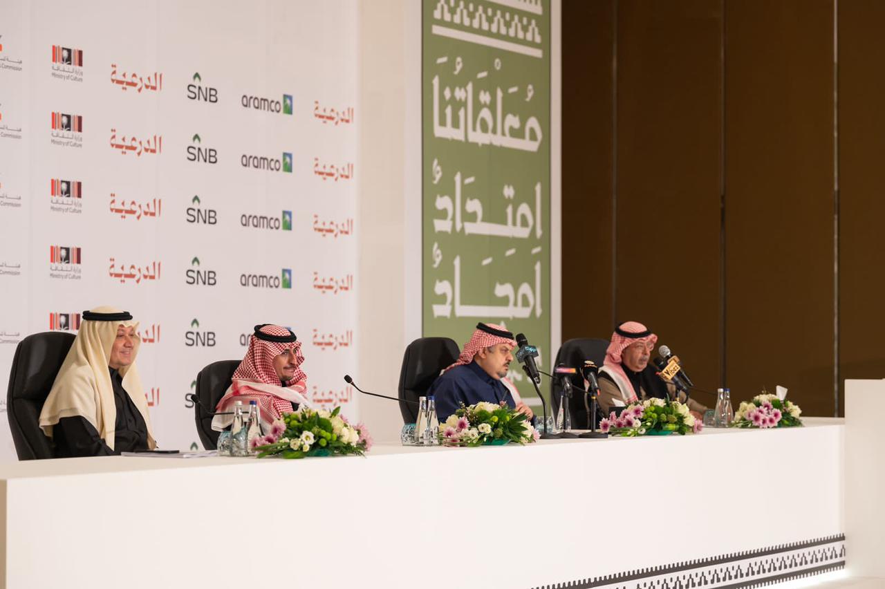 وأوضح سموه خلال المؤتمر الصحفي الذي عقدته هيئة المسرح والفنون الأدائية بالرياض أمس، للكشف عن مجريات العمل الفني الذي سيعرض ضمن فعاليات يوم التأسيس لهذا العام 2023 م، أن العمل مجاراة للمعلقات العشر الشهيرة، وقال “نحن مقبلون على تحد كبير لإنجاز هذا العمل الذي يجسد همة طاقمه”، مستشهداً بمقولة سمو ولي العهد -حفظه الله-: “همة السعوديين مثل جبل طويق”، مضيفاً: “لا يستطيع أي بلد أن ينسب المعلقات له ولحدوده الجغرافية إلا المملكة العربية السعودية، حيث عاش أصحاب المعلقات جميعهم في حدودها”.