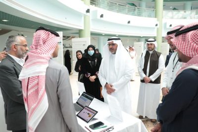 وتضمن المعرض إعداد ركن تعريفي بحاضنة الأعمال (سحابة الوشم)، وذلك بهدف تحقيق التميز في استقطاب أفضل الأفكار الريادية في قطاع الأعمال من قبل أفراد المجتمع المحلي للمساهمة بشكل فعال في تحقيق رؤية المملكة 2030، بالإضافة إلى استعراض عدد من البرامج والتطبيقات المستخدمة في المشاريع البحثية والرسائل العلمية لخدمة الباحث، والتي تعمل على تحسين جودة الإنتاج العلمي وتنظيم المراجع وتنفيذ الإجراءات الإحصائية والرسومات البيانية.