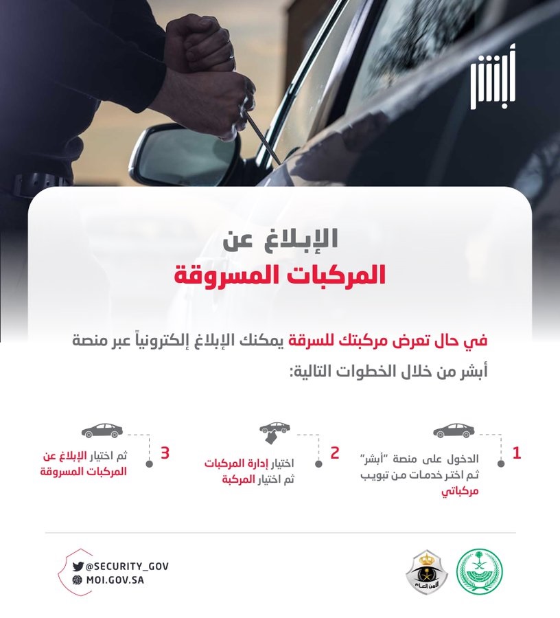 أخبار محلية > 3 خطوات بسيطة للإبلاغ عن المركبات المسروقة عبر “أبشر”