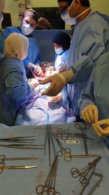 وذكرت “صحة جدة”، أن الفريق الطبي الجراحي بقسم أمراض النساء والولادة بمجمع الملك عبدالله الطبي، استقبل حالة طارئة لمريضة سبعينية تعاني انتفاخاً شديداً في البطن مع آلام مزمنة منذ 4 أشهر؛ حيث عُمل لها فورًا الفحوصات السريرية والمخبرية والإشعاعية التي كشفت وجود 6 أورام سرطانية متفرقة في الجسم شملت أورامًا على المبيضيْن و استسقاءً شديدًا في البطن مع انتشار الورم إلى الأمعاء وورم على الطحال وورم على الغشاء البريتوني.