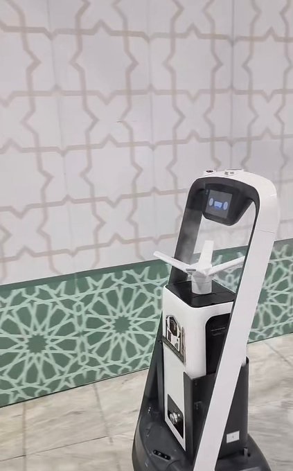 وبث الحساب الرسمي للرئاسة الحرمين، فيديو لاستخدام تقنية الذكاء الاصطناعي في تعقيم وتطهير أجواء وأروقة وممرات المسجد الحرام والصفا والمروة والجسور المطلة على المسعى.