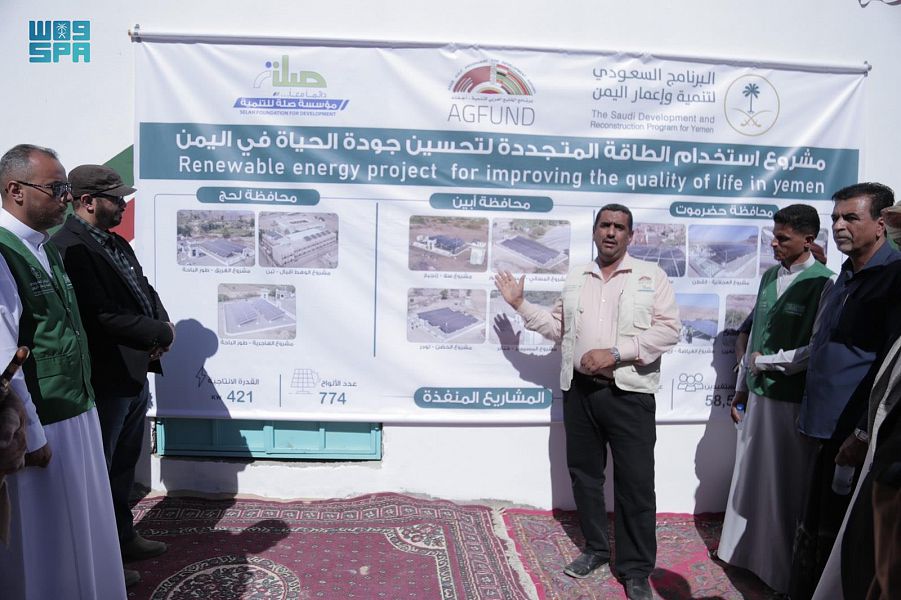 دُشن اليوم في 3 محافظات يمنية 12 مشروعًا لتوفير مياه الشرب باستخدام منظومات الطاقة الشمسية، حيث يشمل محافظة حضرموت، ومحافظة أبين، ومحافظة لحج، ويستفيد من الموقع الأول للمشروع في مديرية قطن بمحافظة حضرموت 8000 مستفيد، وذلك من أصل 58 ألف مستفيد في 11 مديرية في المحافظات الثلاثة المستفيدة، التي تأتي بمساهمة ثلاثية من البرنامج السعودي لتنمية واعمار اليمن وبرنامج الخليج العربي للتنمية “أجفند” ومؤسسة صلة للتنمية.