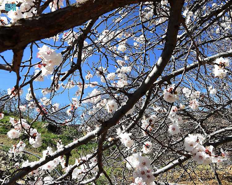 اكتست مزارع وبساتين المشمش بمركزي الشفا والهدا ووادي محرم والغديرين والبني والمخاضة بياض ما يعرف ” بالفضيض ” ، مع نهاية موسم الشتاء .