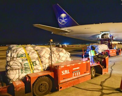 إنفاذا لتوجيهات خادم الحرمين الشريفين الملك سلمان بن عبدالعزيز آل سعود وصاحب السمو الملكي الأمير محمد بن سلمان بن عبدالعزيز آل سعود ولي العهد رئيس مجلس الوزراء – حفظهما الله – غادرت مطار الملك خالد الدولي فجر اليوم الطائرة الإغاثية السعودية الثالثة، إلى مطار أضنة بجمهورية تركيا تحمل على متنها 104 أطنان و62 كيلو غرام من المساعدات الإغاثية تشتمل على المواد الغذائية والخيام والبطانيات والبسط والحقائب الإيوائية بالإضافة إلى المواد الطبية.