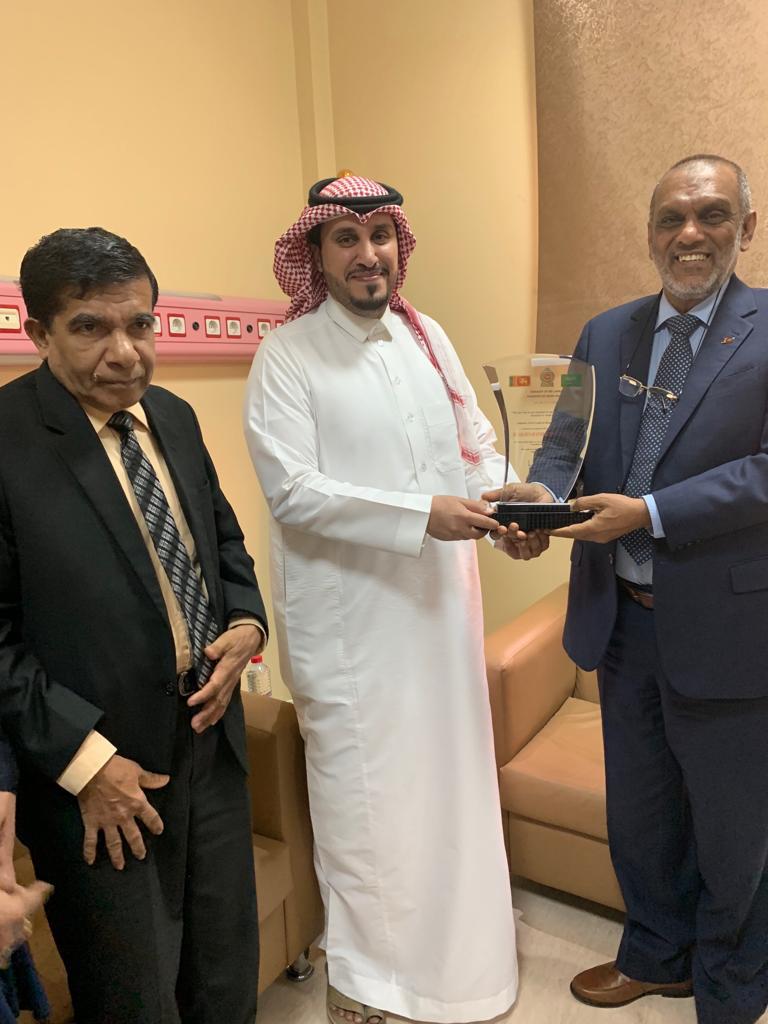 وفي نهاية الزيارة شكر سعادة السفير طاقم المستشفى على ما يقدمونه من رعاية وإهتمام للجالية السيرلانكيه وقدم سعادته درع تذكاري لإدارة المستشفى تعبيراً عن تقديره للجهود المقدمه.