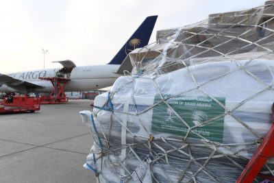 غادرت مطار الملك خالد الدولي بالرياض اليوم, الطائرة الإغاثية السعودية السابعة، تحمل على متنها تجهيزات طبية متنوعة بقيمة تزيد عن 36 مليون ريال سعودي تشتمل على جهاز صدمات قلب، وأجهزة تخطيط قلب، وأجهزة موجات صوتية، وأجهزة لغازات الدم وتحليل الدم، وأجهزة مراقبة مريض، وأدوية للأمراض المزمنة وأدوية خاصة بأمراض البرد وأدوية تخدير وإنعاش، وطاولات عمليات وإضاءات لغرفة العمليات، وأجهزة لقياس الحرارة والضغط والسكر وفحص النظر، وجبائر، وحاميات من الرصاص ضد الأشعة، وأجهزة تعقيم، وأجهزة قياس الأوكسجين في الدم، ومولدات كهربائية، وأطقم عمليات جراحية بما فيها عمليات العظام، وأقنعة وجه، وغيرها.