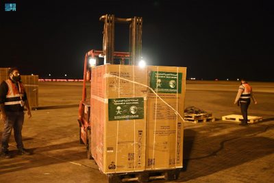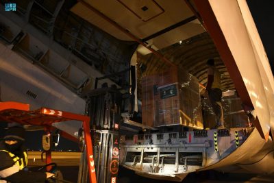 غادرت مطار الملك خالد الدولي فجر اليوم الطائرة الإغاثية السعودية الثامنة متوجهة إلى مطار حلب الدولي تحمل على متنها مواد غذائية وطبية وإيوائية تزن 35 طناً و 322 كيلوغراماً.