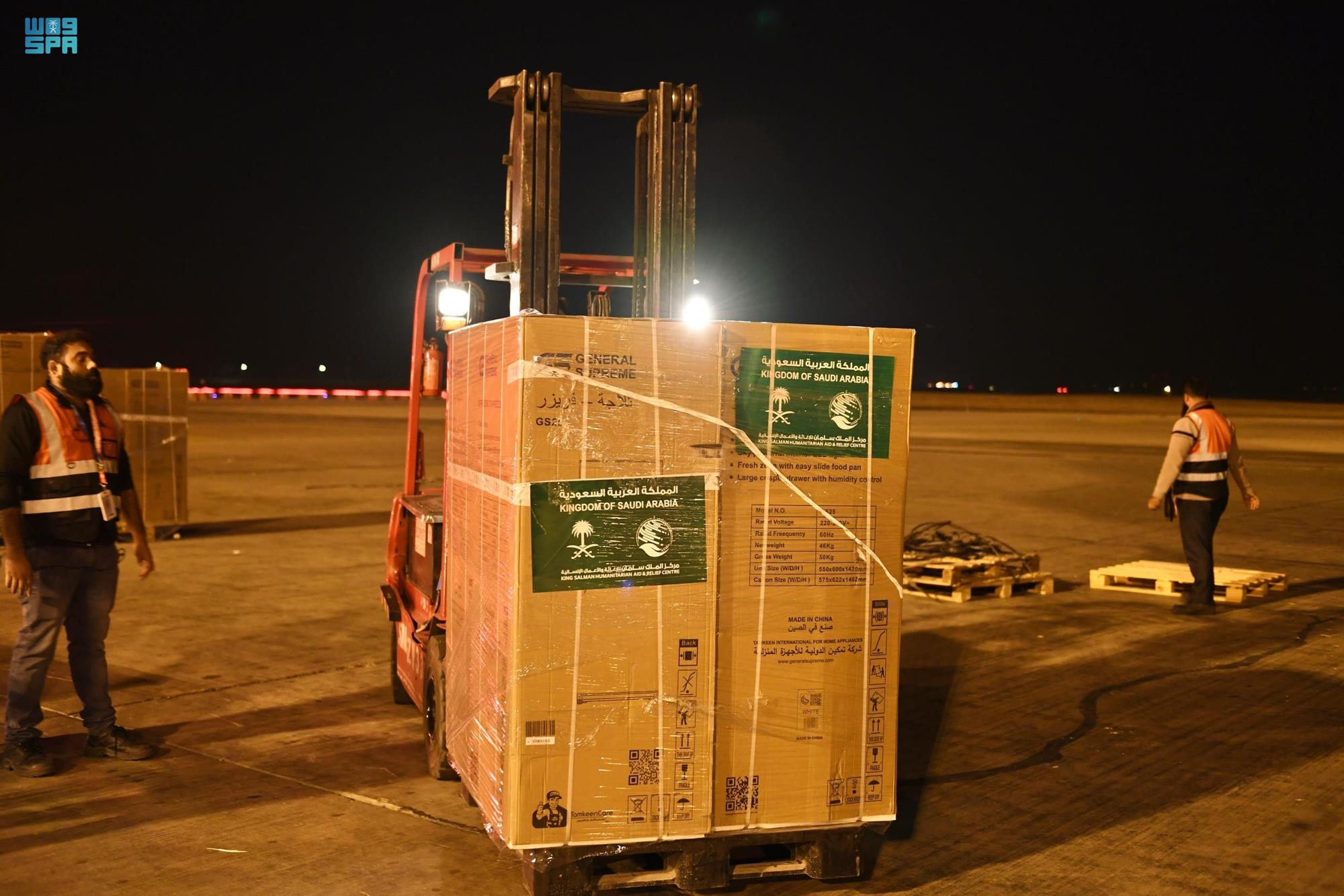 ويأتي ذلك ضمن الجسر الإغاثي السعودي الذي يسيّره مركز الملك سلمان للإغاثة والأعمال الإنسانية لمساعدة متضرري الزلزال في سوريا وتركيا، إنفاذاً لتوجيهات خادم الحرمين الشريفين الملك سلمان بن عبدالعزيز آل سعود وصاحب السمو الملكي الأمير محمد بن سلمان بن عبدالعزيز ولي العهد رئيس مجلس الوزراء -حفظهما الله- وتجسيدا للدور الإنساني النبيل الذي تقوم به المملكة العربية السعودية.