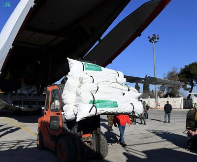 ويأتي ذلك ضمن الجسر الإغاثي السعودي الذي يسيّره مركز الملك سلمان للإغاثة والأعمال الإنسانية لمساعدة متضرري الزلزال في سوريا وتركيا، إنفاذاً لتوجيهات خادم الحرمين الشريفين الملك سلمان بن عبدالعزيز آل سعود وصاحب السمو الملكي الأمير محمد بن سلمان بن عبدالعزيز ولي العهد رئيس مجلس الوزراء -حفظهما الله- وتجسيداً للدور الإنساني النبيل الذي تقوم به المملكة.