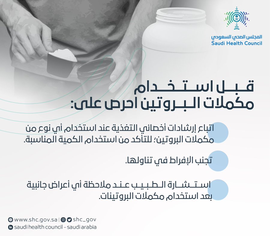 أكد المجلس الصحي السعودي ضرورة مراعاة عدد من النصائح قبل اللجوء إلى استخدام مكملات البروتين.
