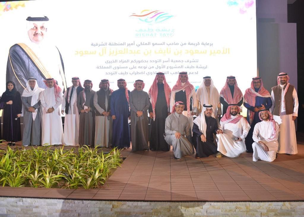 تحت رعاية صاحب السمو الملكي امير المنطقة الشرقية، أفتتح محافظ القطيف إبراهيم بن محمد الخريف، مساء أمس الاربعاء ، حفل مزاد ريشة طيف الخيري الثاني، في النابية بمحافظة القطيف، بحضور سمو الأمير سعود بن عبدالعزيز بن فرحان آل سعود رئيس مجلس إدارة جمعية أسرة التوحد، متبني فكرة مشروع ريشة طيف.