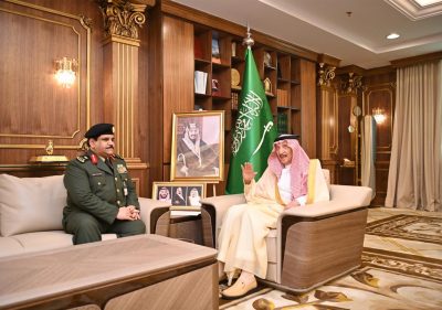 استقبل صاحبُ السموِّ الملكي الأمير محمد بن ناصر بن عبد العزيز أمير منطقة جازان، بحضور صاحبُ السموِّ الملكي الأمير محمد بن عبدالعزيز بن محمد بن عبدالعزيز، نائب أمير المنطقة، في مكتبه بالإمارة اليوم، مدير عام السجون بالمملكة اللواء ماجد بن بندر الدويش، الذي يزور المنطقة حاليًا. وفي بداية الاستقبال رحّب سمو أمير جازان باللواء الدويش، مؤكدًا سموه الدور المهم للسجون وضرورة العناية بالمساجين والاستمرار في تقديم برامج الإصلاح والتأهيل، مشيدًا في الوقت نفسه، بالدعم الذي تقدّمه حكومة خادم الحرمين الشريفين الملك سلمان بن عبد العزيز آل سعود، وسمو ولي العهد -حفظهما الله-، للسجناء وأسرهم. وبحث سمو الأمير محمد بن ناصر، مع اللواء الدويش، عدداً من الموضوعات المتعلقة بسجون المنطقة وبرامجها التأهيلية التي تسهم في إصلاح وتهذيب النزلاء وتوجيههم وترشيدهم لكل ماهوا أفضل. وأعرب مدير عام السجون، عن شكره لسمو أمير منطقة جازان على اهتمامه ومتابعته لسير العمل في سجون المنطقة وتطوير الخدمات المقدمة فيها. حضر الاستقبال وكيل الإمارة المساعد للحقوق سعيد بن مناحي الخنفري ، ومدير السجون بمنطقة جازان اللواء الدكتور شائع بن سعد القحطاني.