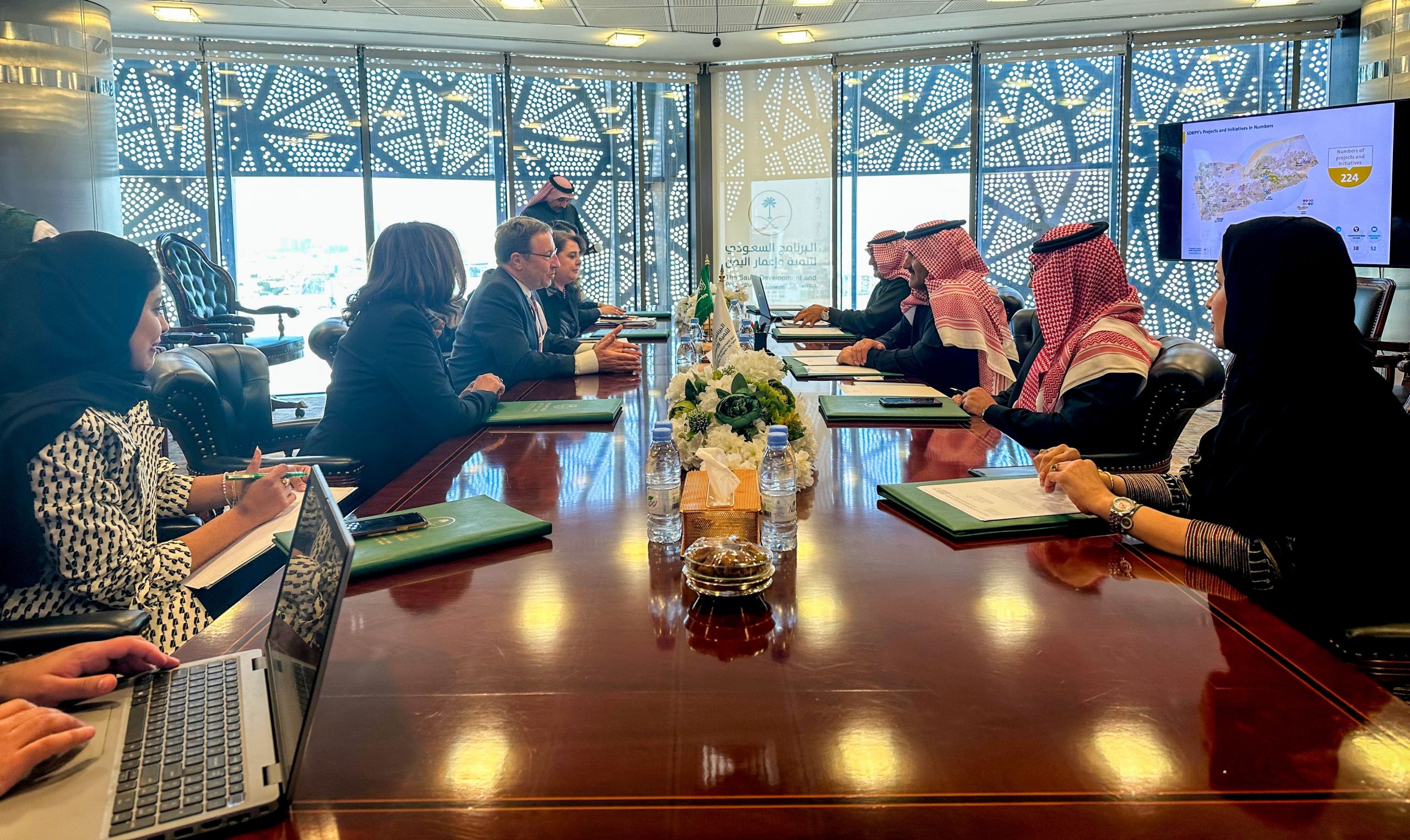 واستعرض اللقاء دعم المملكة المقدم إلى الجمهورية اليمنية الشقيقة والمستمر منذ عقود، كما تطرق اللقاء إلى مشاريع ومبادرات البرنامج السعودي لتنمية وإعمار اليمن في 7 قطاعات أساسية، وهي: التعليم، والصحة، والمياه، والطاقة، والنقل، والزراعة والثروة السمكية، وبناء قدرات المؤسسات الحكومية بالإضافة إلى البرامج التنموية التي أسهمت في تعزيز الاقتصاد اليمني، وتوفير فرص العمل، وتحسين الحياة اليومية للأشقاء في اليمن.