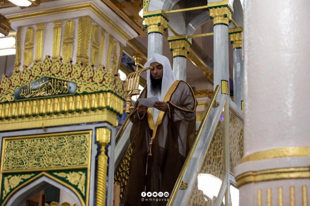 خطب وأم المصلين في المسجد النبوي فضيلة الشيخ صلاح بن محمد البدير إمام وخطيب المسجد النبوي الشريف.