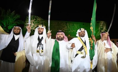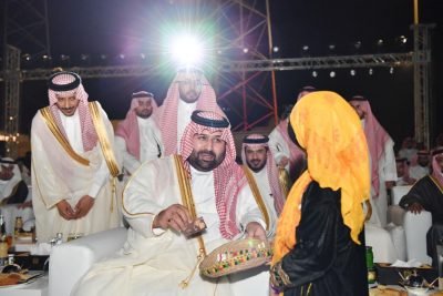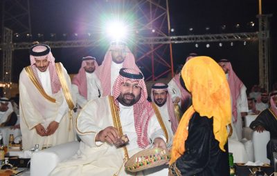وفي ختام الحفل شارك سمو نائب أمير جازان وضيوف الحفل في العرضة السعودية احتفاءً بالمناسبة الغالية.