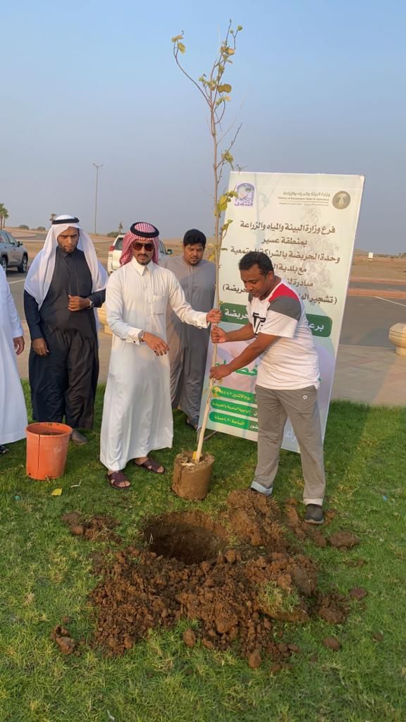 يواصل فرع وزارة البيئة والمياه والزراعة بمنطقة عسير أنشطته من خلال زراعة الشتلات واقامة ورش العمل ففي مركز الحريضة تتواصل أعمال مبادرة لنجعلها خضراء لليوم بزراعة 500 شتلة بالواجهة البحرية بالحريضة.