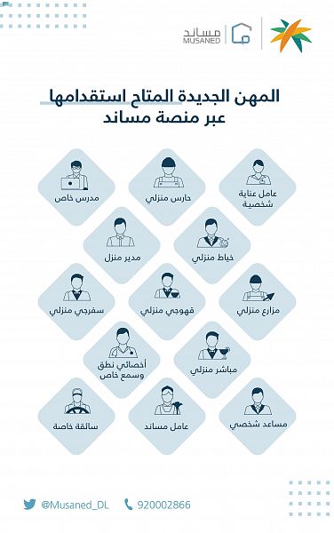 وزارة الموارد البشرية والتنمية الاجتماعية تتيح 10 مهن جديدة للاستقدام لفئة العمالة المنزلية عبر منصة مساند