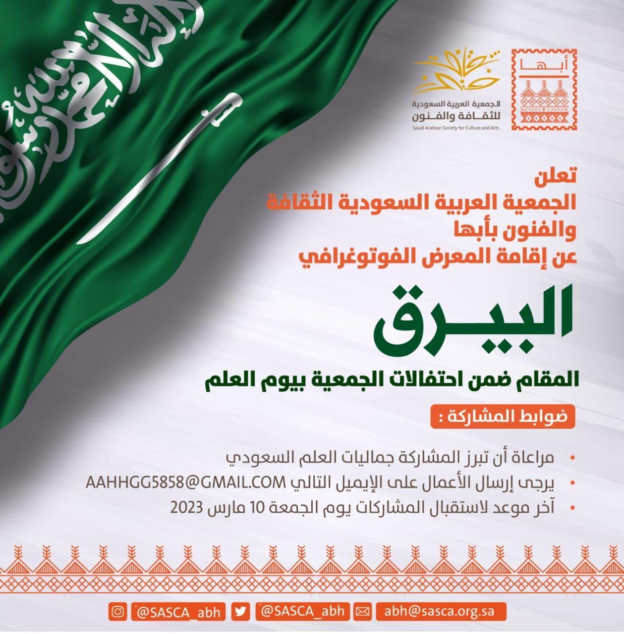 تقيم جمعية الثقافة والفنون بأبها مساء الأحد المقبل معرض البيرق الفوتوغرافي ضمن احتفالاتها بيوم العلم الموافق ١١ مارس.