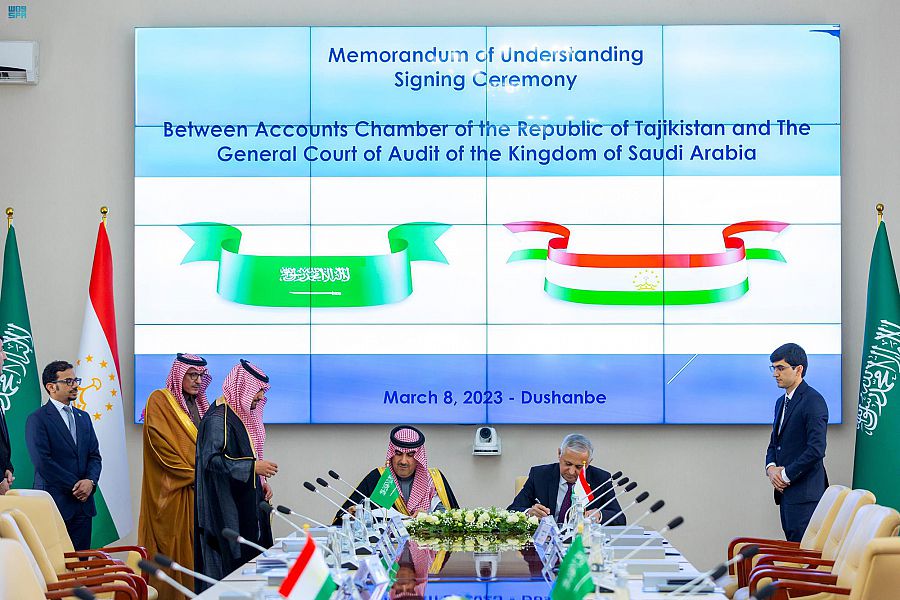 وقع معالي رئيس الديوان العام للمحاسبة الدكتور حسام بن عبدالمحسن العنقري، ومعالي رئيس غرفة الحسابات بجمهورية طاجيكستان قره خان تشيله زاده، اليوم، مذكرة تفاهم لتعزيز التعاون في مجال العمل المحاسبي والرقابي والمهني، وذلك بمقر غرفة الحسابات بالعاصمة الطاجيكستانية دوشنبيه، وبحضور سفير خادم الحرمين الشريفين لدى جمهورية طاجيكستان وليد بن عبدالرحمن الرشيدان.