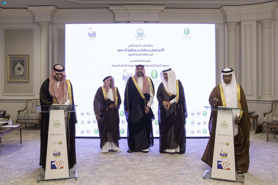 كما شهِد الأمير فيصل بن سلمان، بحضور معالي الوزير، توقيع اتفاقيتيّ تعاون ثنائية، بين فرع وزارة البيئة والمياه والزراعة بالمنطقة وشركة رضوى للدواجن، للتوسع في الانتاج والوصول إلى 100 مليون طائر سنوياً قبل نهاية عام 2023م، واتفاقية أخرى بين صندوق التنمية الزراعية وشركة رضوى لدعم الوصول إلى تلك المستهدفات.