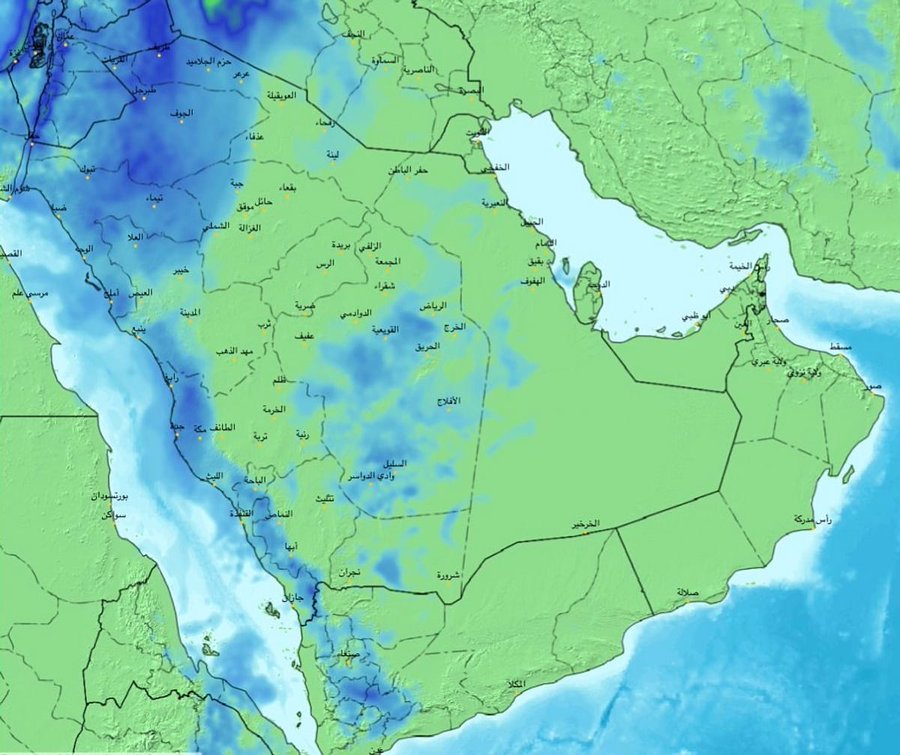 توقّع الباحث في الطقس عضو لجنة تسميات المناخية عبدالعزيز الحصيني؛ اليوم الثلاثاء 22 وفجر الأربعاء 24 شعبان 1444هـ، أمطاراً متفاوتة من مكانٍ إلى آخر من خفيفة إلى شبه غزيرة وحبات برد؛ قد تكون غزيرة على سواحل تبوك الشمالية، وأضاف عبر حسابه في تويتر: مع فرصة سيول على أجزاءٍ متفرقة من مناطق: مكة المكرّمة والمدينة المنوّرة والباحة وعسير ونجران وجازان وتبوك والرياض والجوف والحدود الشمالية والشرقية وغرب حائل، واليمن، تسبق برياحٍ نشطة، والله أعلم.