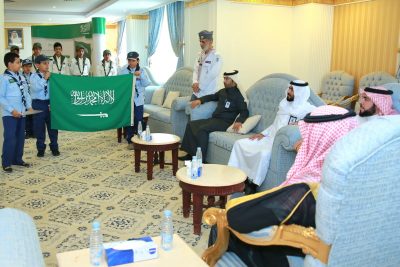 استقبل سمو محافظ المجمعة الأمير عبدالرحمن بن عبدالله بن فيصل اليوم في ديوان المحافظة مدير التعليم بمحافظة المجمعة الأستاذ يوسف بن عبداللطيف الملحم وبمعيته المساعد للشؤون التعليمية الأستاذ سعد بن غازي الحربي وعدد من الطلاب وأشبال كشافة تعليم المجمعة؛ وذلك احتفاء بيوم العَلم.