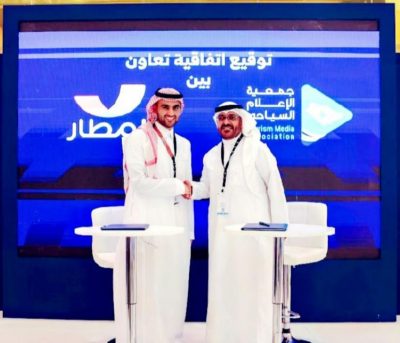 وقعت جمعية الإعلام السياحي اتفاقية تعاون وشراكة مع تطبيق المطار في ختام ملتقى السياحة السعودي تحت أشراف الهيئة السعودية للسياحة “بابك للسياحة” وقال الشريك المؤسس في تطبيق المطار فيصل بن يوسف الراجحي إن الإعلام شريك تنموي في العمل السياحي وحرصاً على بناء شراكات مع إعلام متخصص جاءت الاتفاقية مع جمعية الإعلام السياحي لبناء محتوى ملائم للتطور المتسارع في قطاع الضيافة والسياحة بشكل عام وتدريب شباب وشابات الوطن على أدوات الإعلام السياحي.
