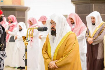 وأم المصلين في التسليمات الأولى بصلاة التراويح فضيلة الشيخ الدكتور ياسر الدوسري، والتسليمات الثانية فضيلة الشيخ الدكتور عبدالرحمن السديس.