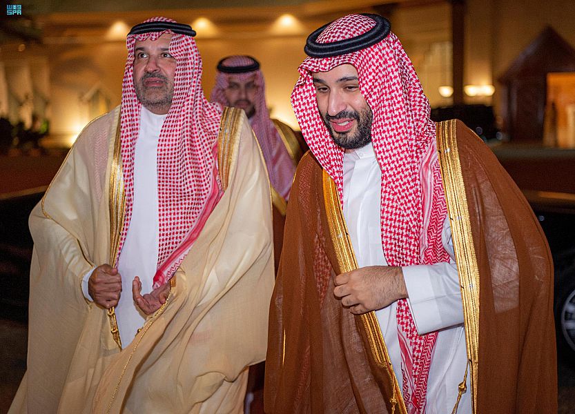 وقد غادر بمعية سمو ولي العهد، صاحب السمو الملكي الأمير تركي بن محمد بن فهد بن عبدالعزيز وزير الدولة عضو مجلس الوزراء، وصاحب السمو الملكي الأمير عبدالعزيز بن تركي الفيصل وزير الرياضة، وصاحب السمو الملكي الأمير سعود بن سلمان بن عبدالعزيز، وصاحب السمو الملكي الأمير خالد بن سلمان بن عبدالعزيز وزير الدفاع، ومعالي عضو هيئة كبار العلماء المستشار في الديوان الملكي الشيخ الدكتور سعد بن ناصر الشثري، وأصحاب المعالي الوزراء.
