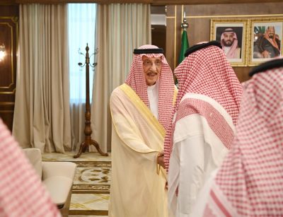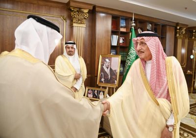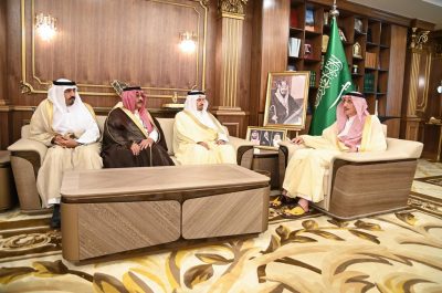 وبادلهم سموه التهنئة، داعياً الله تعالى أن يتقبل من الجميع صالح الأعمال ، وأن يديم على الوطن أمنه وأمانه واستقراره في ظل قيادته الرشيدة -أيدها الله-.