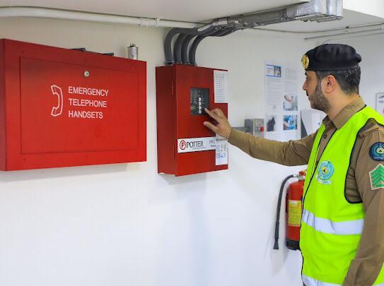 وحرص الدفاع المدني على سلامة أنظمة المصاعد والسلالم الكهربائية وتوافر نقاط التجمع الآمنة خارج المنشآت لتحقيق أعلى درجات السلامة ومنع وقوع الحوادث، ورفع مستوى الوعي الوقائي للعاملين فيها و لزوار الحرمين الشريفين .