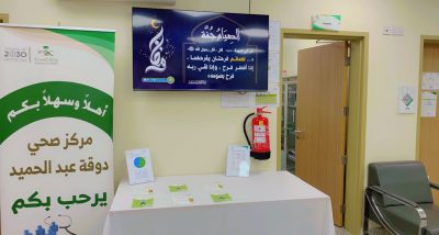 كما عرضت هيئة محافظة قلوة محتوى البرنامج كذلك بالتعاون مع إدارة المرور والمراكز الصحية بالمحافظة من خلال الشاشات الرقمية واللوحات الإلكترونية.