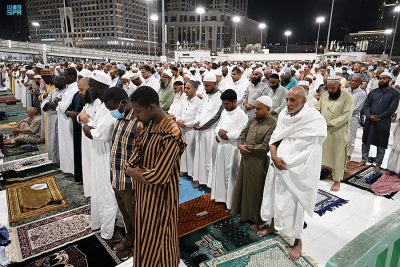 وكثفت جميع إدارات المسجد الحرام جهودها لاستقبال وفود المصلين والمعتمرين القادمين إلى المسجد الحرام منذ الساعات الأولى للصباح، مع تهيئة الساحات والمصليات والبوابات والممرات لسهولة دخولهم وخروجهم وأداء عباداتهم بخشوع وسكينة وطمأنينة وسط منظومة متكاملة من الخدمات.