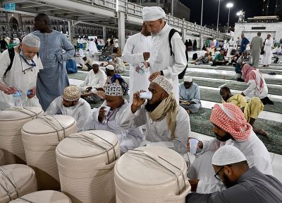 كما جندت (200) مشرف سعودي مؤهل للقيام بمراقبة الأعمال الميدانية على (4000) عامل وعاملة، بغسل المسجد الحرام (١٠) مرات يومياً، وتهيئة (7000) عبوة ماء زمزم و(800)عامل لتوزيعها على المصلين ، فيما وُزعت (4500)حافظة ماء زمزم في أرجاء المسجد الحرام، يستهلك من خلالها حوالي (500) ألف لتر.